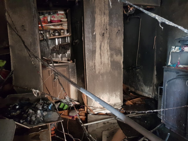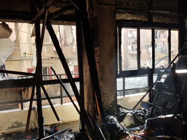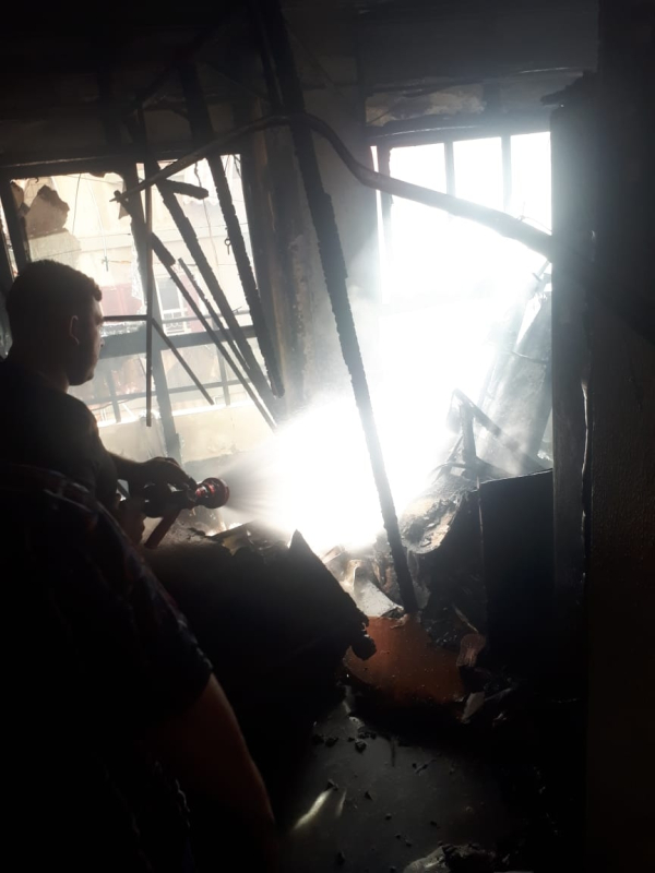 اخماد حريق منزل خالد دبورة (سوري) بناية رولا سنتر ط التاني في حي الحاج حافظ، والاضرار ماديق فقط وقد اتت على كامل محتويات المنزل.
