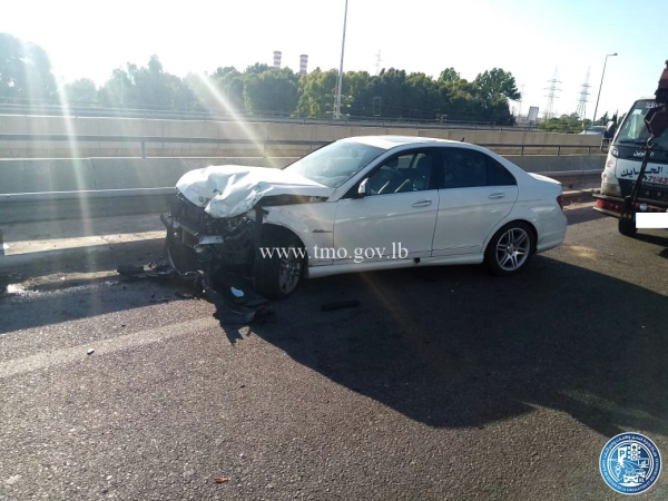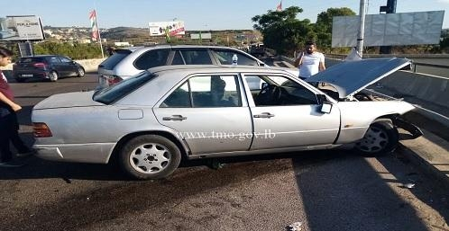 بالصور: تصادم 4 سيارات على جسر الزهراني... وسقوط 8 جرحى