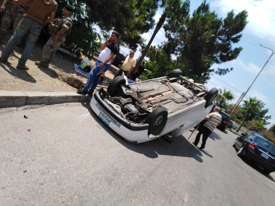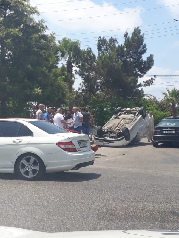 وقع حادث سير عند دوار الحسبة في مدينة صيدا حيث إصطدمت سيارة من نوع رينو Clio حمراء اللون بسيارة معدة للنقل من نوع Opel بيضاء اللون ما ادى الى انقلابها.