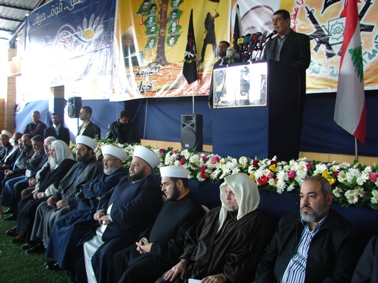 ممثل حركة حماس في لبنان علي بركة : حيا شهداء قوات الفجر وشهداء الحركة الإسلامية والمقاومة الإسلامية وكل الشهداء . وأكد بركة فشل الرهان على خيار المفاوضات مع العدو الصهيوني بفعل العدوان الصهيوني المستمر وجنون الاستيطان والتهويد. داعيا للعودة إلى مربع الجهاد والمقاومة المسلحة .