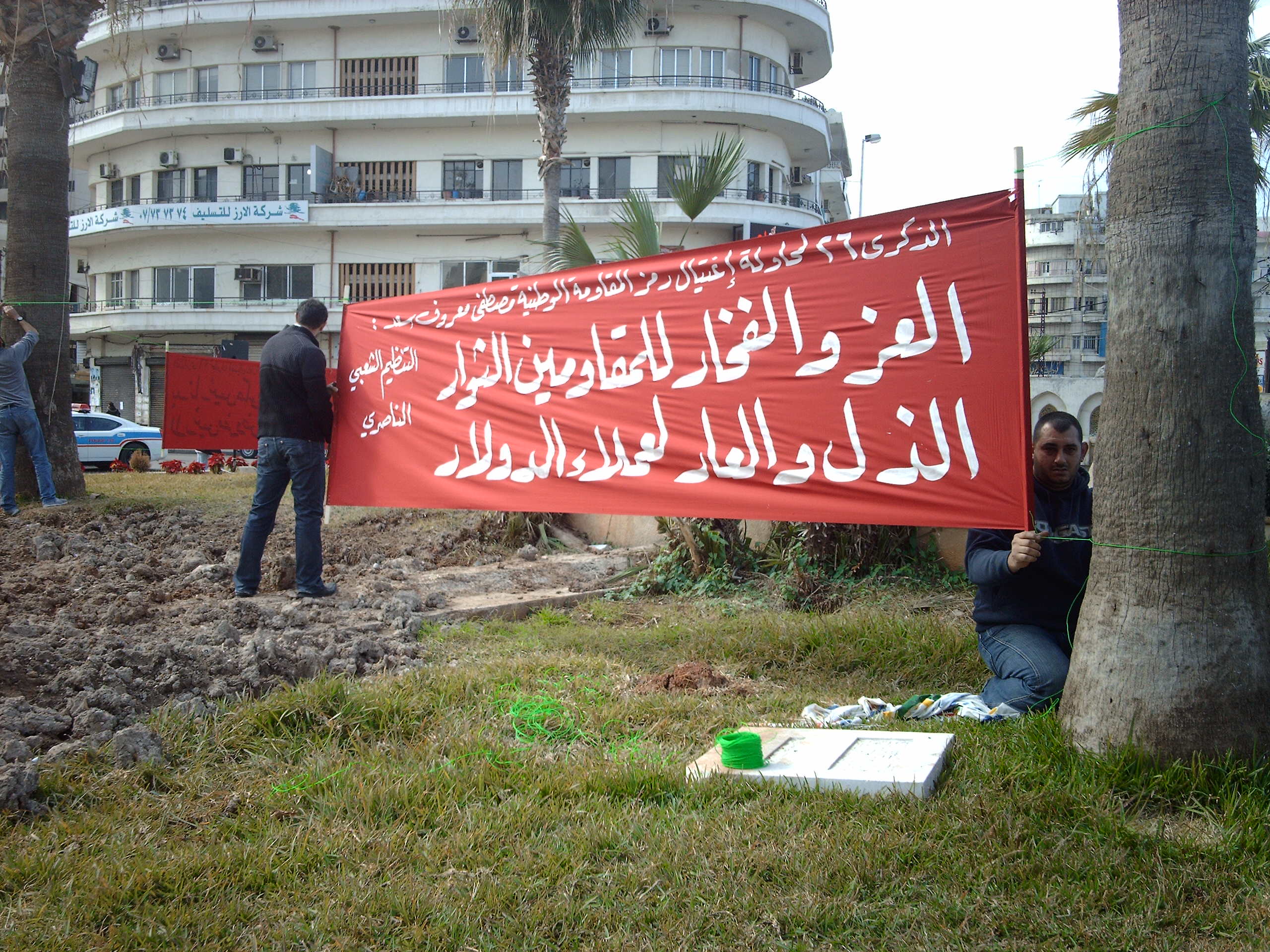 رفع التنظيم الشعبي الناصري يافطات احياء للذكرى ال26 لمحاولة اغتيال رمز المقاومة الوطنية الشهيد مصطفى معروف سعد وتاتي هذه الذكرى في ظل انقسام سياسي حاد في البلد فتضمنت هذه اليافطات عبارات تطالب برئيس للحكومة ليس مفروضا من دول الغرب وهذه الحملة الاعلانية للتنظيم حسبما يراه المراقبون تاتي بعد قيام انصار تيار الحريري و المستقبل بوضع يافطات تطالب بعودة الرئيس سعد الحريري الى الحكومة.
