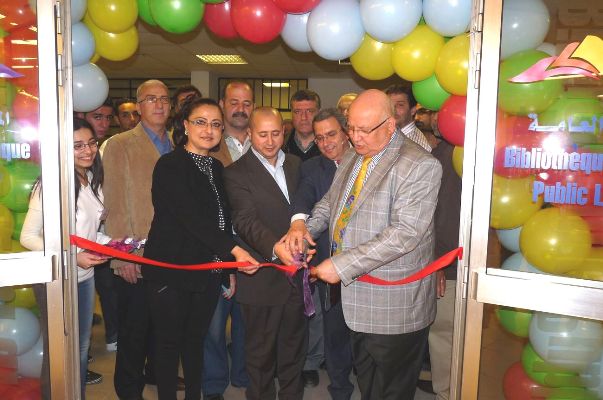 وختاما قص السعودي وهاشم والسيدة البزري شريط الإفتتاح ، ثم كانت جولة في أرجاء المكتبة العامة , فكوكتيل بالمناسبة.