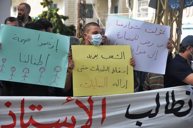 سكان الهلالية نفذو اعتصاماً أمام مبنى بلدية الهلالية رفعوا خلالها يافاطات عديدة حملت عناوين ومطالب مختلفة: " لا للنفايات لا للزبالة " " امبلا للنظافة " " الي مش قد المسؤولية ما يحملها " مشكلة زبالة ما عرفتوا تحلوها، لكن شو بتعرفوا تحلوا " " يا بتحلوها يا منحلا" " الشعب يريد إسقاط البلديات حتى إزالة النفايات " " تخنتوها " " ما بنحب الزبالة ولا ريحتها " " البلدية التي لا تستطيع أن تلبي مطالب سكانها... لتستقيل؟" " لقد تحولت شوارعنا من رمز للحضارة إلى عنوان للقذارة ... " " شيلوا الزبالة من بيت بيت.. دار دار.. زنجا زنجا... " وغيرها الكثير من الشعارات...