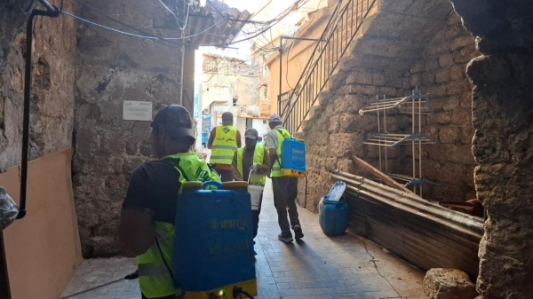 وباشرت صباح اليوم فرق مجموعة معطي غروب أعمال رش المبيدات في الأحياء والساحات داخل المدينة القديمة حيث لاقت ترحابا من الأهالي، ولا سيما مع تكاثر الحشرات والقوارض في فصل الصيف وارتفاع الحرارة.