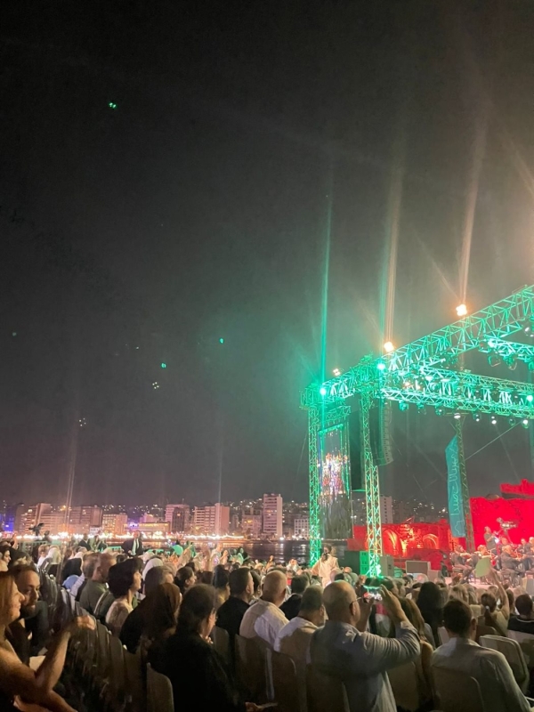 حيث تحول رصيف الميناء القديم " مكان المهرجان " الذي لطالما كان شاهدا على المراكب والصيادين إلى مسرح مفتوح يعانق البحر وقلعة صيدا البحرية التاريخية فيما انسكب ضوء القمر على الواجهة البحرية مضيفا رونقا وسحرا من نوع آخر ليتكامل مع مشهدية الفن والموسيقى للحفلة فبدت صيدا كما لم نراها من قبل وكأنها تستيقظ على وعد جديد بالمجد والفرح وحب الحياة الذي تستحق !!