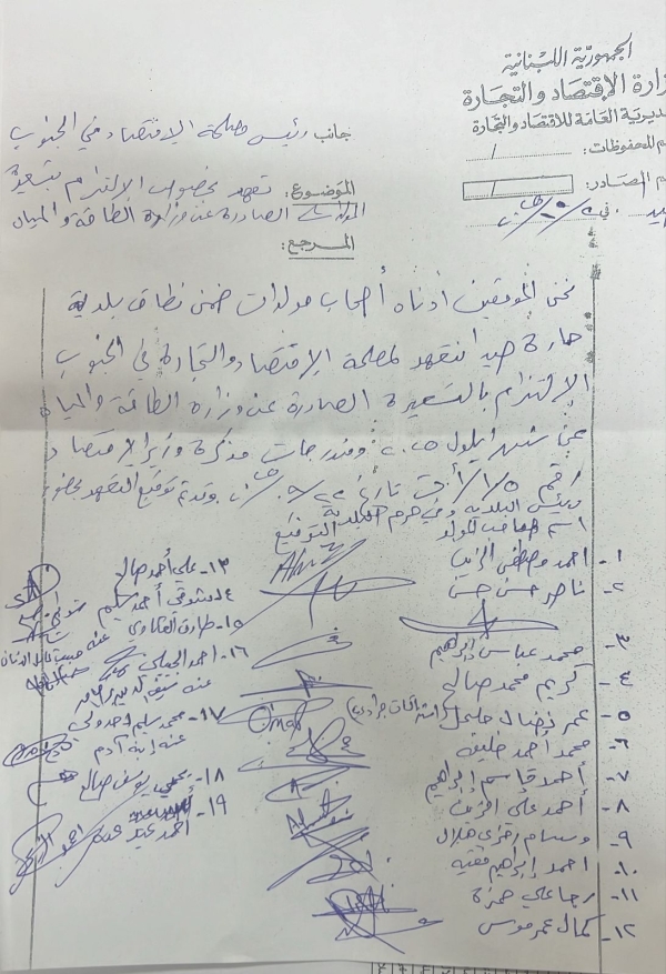 وتم التوقيع على التعهد في محضر الوزارة الاقتصاد من أصحاب المولدات و هم