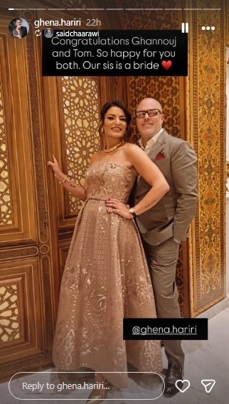 أعلنت غنى الحريري إبنة السيّدة بهيّة الحريري، عن زواجها من الشاب الأجنبيّ توم فان هميلريك.