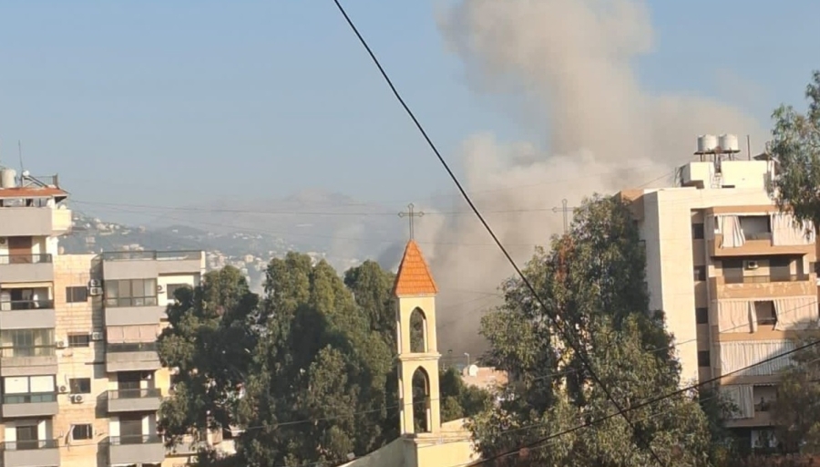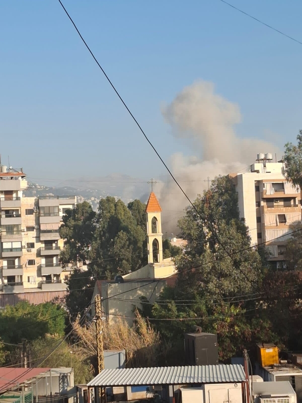 مشاهد غارة على بناية المقاصد صيدا