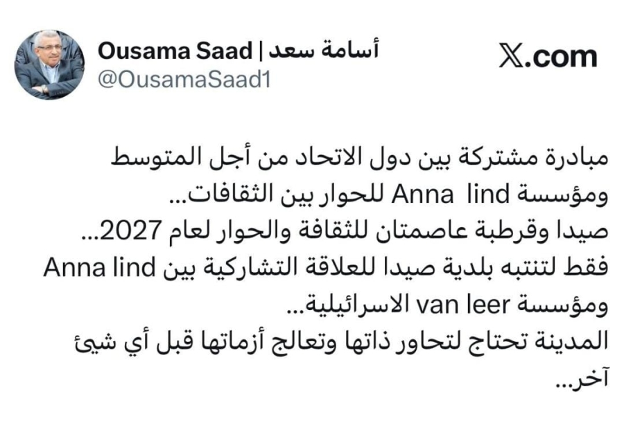 اسامة سعد فقط لتنتبه بلدية صيدا للعلاقة التشاركية بين Anna lind ومؤسسة van leer الاسرائيلية…