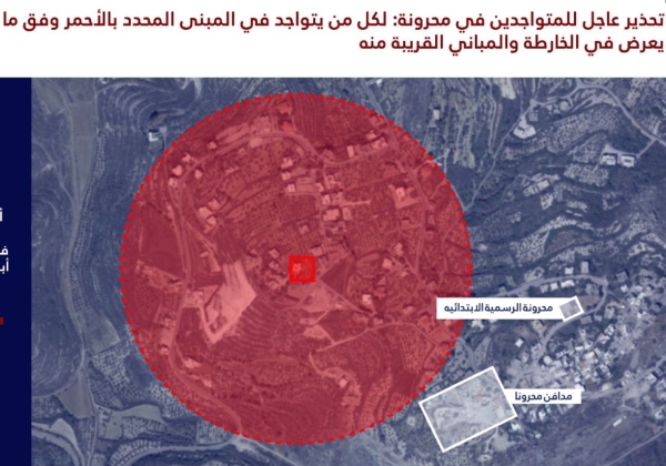وطالب سكان المباني المحددة بالأحمر في الخرائط المرفقة والمباني المجاورة لها في القريتيْن بإخلائها فورًا والابتعاد عنها لمسافة لا تقل عن 300 متر.
