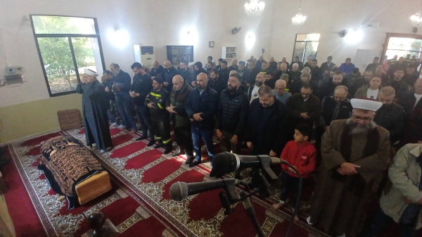 بعد أن أمّ صلاة الظهر امام مسجد الغفران الشيخ حسام العيلاني، أم صلاة الجنازة رئيس جمعية الألفة الشيخ صهيب حبلي، الذي استذكر في كلمته مناقب الراحل، مشيدًا بعمله الدؤوب وتفانيه في أداء واجبه الإنساني، وبمسيرته التي اتسمت بالإخلاص والتضحية في سبيل خدمة الناس، تاركًا خلفه سيرة طيبة وذكرى لا تغيب.