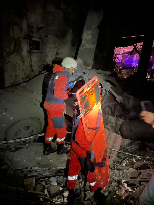 تعمل فرق الدفاع المدني و فوج الإنقاذ الشعبي على إخماد حريق اندلع في مبنى مجاور للمكان المستهدف