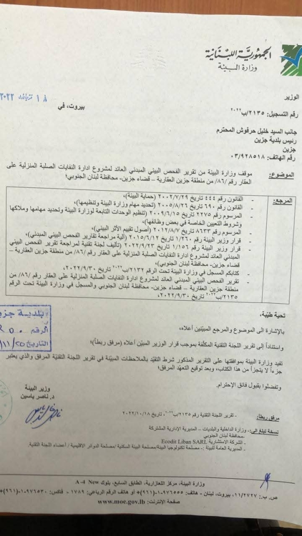 ▪️أولاً: كانت القوات اللبنانية موافقة بدايةً على المشروع وأكبر دليل على ذلك توقيع أعضاء القوات في مجلس بلدية جزين – عين مجدلين على قرار إنشاء المركز ومشاركة نائب رئيس البلدية في اللجنة التقنية لدراسة المشروع. (مستند مرفق ربطاً).
