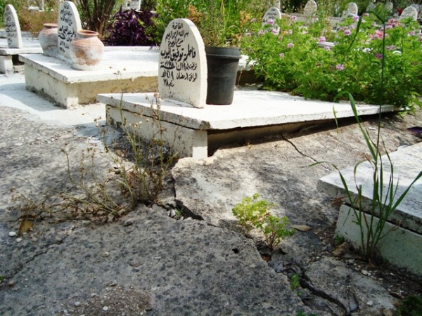 يتعذر المرور بين القبور المتشققة والارض الخاسفة في مقبرة صيدا الجديدة"سيروب".