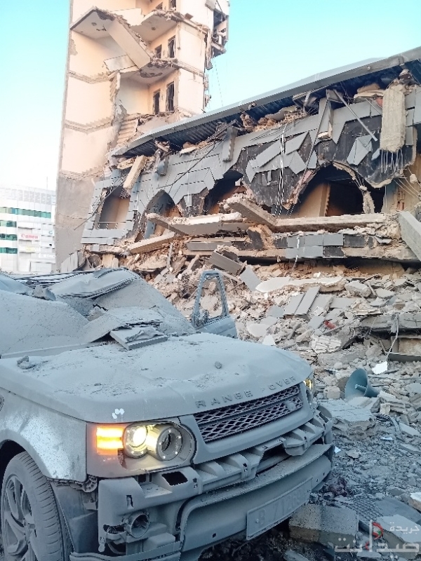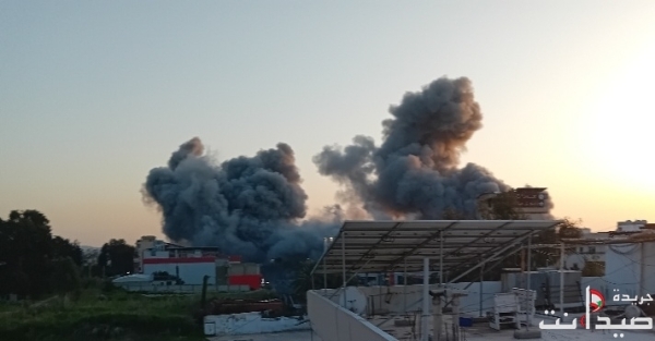 مشاهد غارة على بناية المقاصد صيدا