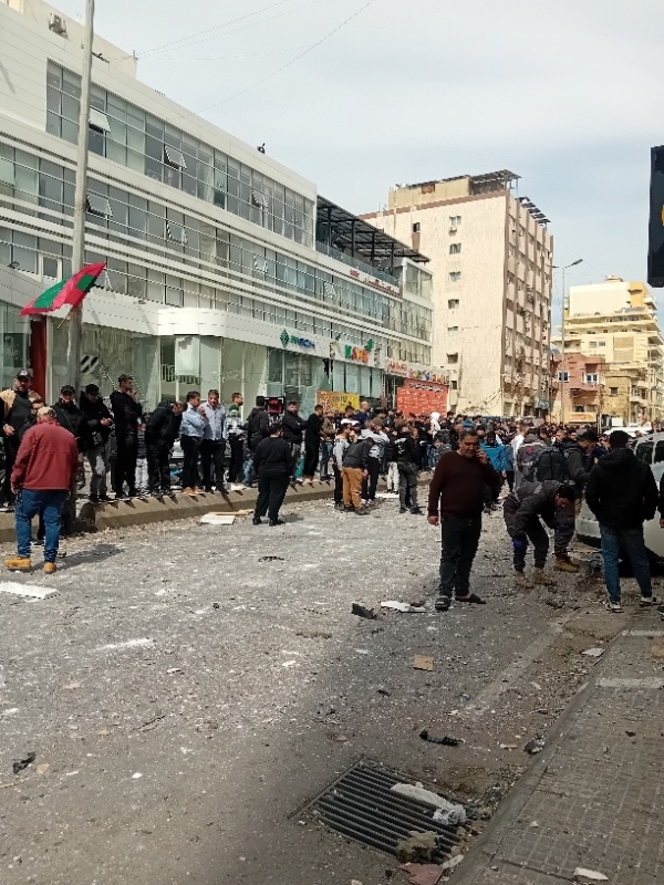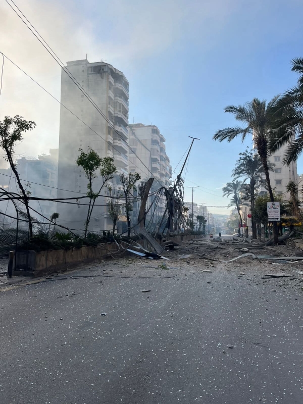 مشاهد غارة على بناية المقاصد صيدا
