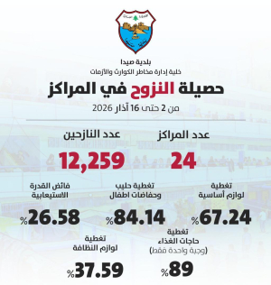 حصيلة النزوح في مراكز الإيواء 24 المعتمدة داخل المدينة 12259 نزح