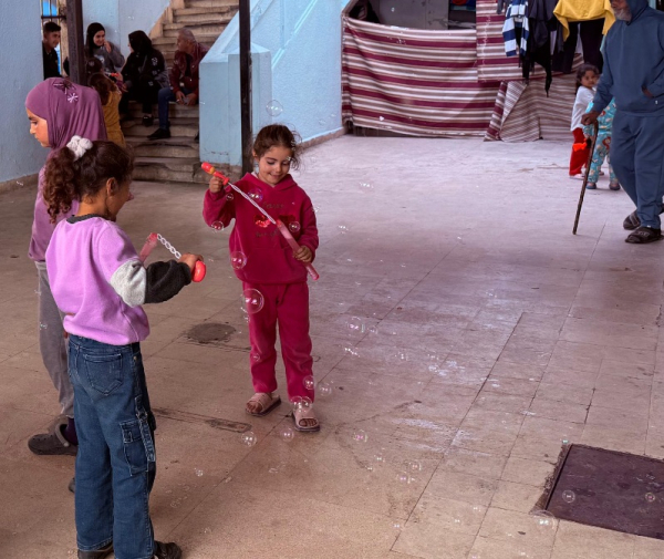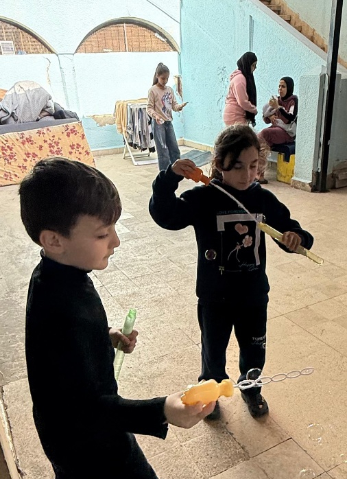 ففي أرجاء مركز الإيواء، بدت ملامح العيد واضحة على وجوه الأطفال، وهم يلعبون ويمرحون ببراءة، فيما كان أهلهم ينظرون إليهم بفرح ممزوج بالأمل، وكأن هذه اللحظات الجميلة تنتصر على الوجع، ولو لبعض الوقت.