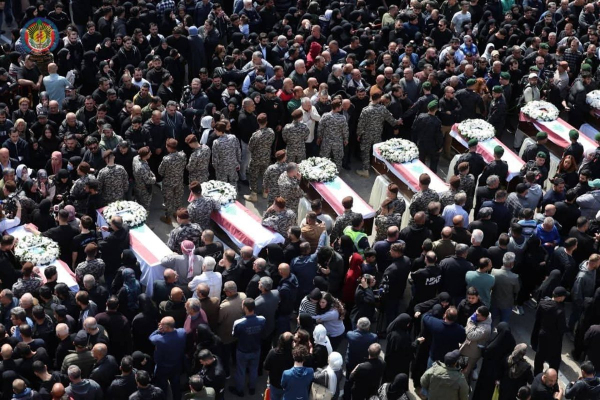 مراسيم تشييع مهيبة 13 شهيدًا من جهاز أمن الدولة في سرايا صيدا وسط حشد غفير