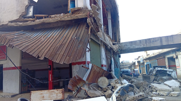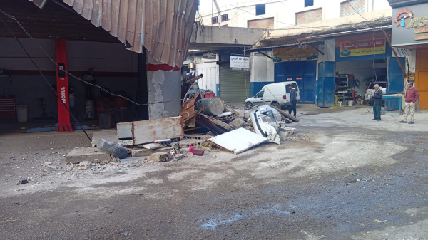 وقد أسفر الانهيار عن تضرر عدد كبير من المحلات التجارية في المكان، ما خلّف خسائر مادية لأصحابها.