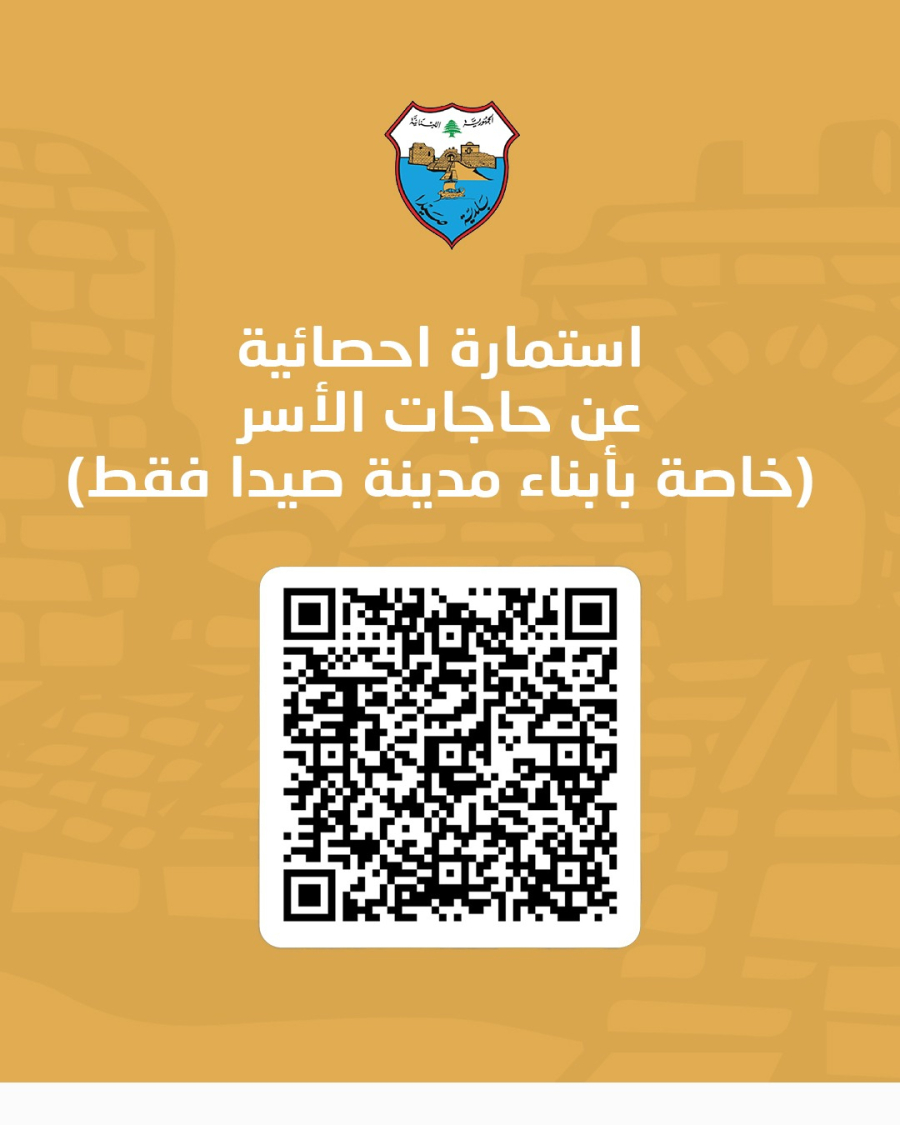 في ظلّ الظروف الدقيقة التي نمرّ بها، وحرصاً من بلدية صيدا على مواكبة أوضاع أهل المدينة بالتوازي مع متابعة أوضاع أهلنا النازحين، وانطلاقاً من تأثّر المجتمع المضيف بالظروف الاقتصادية والمعيشية الراهنة، تطلق البلدية استمارة إحصائية إلكترونية مخصّصة حصراً لأهالي مدينة صيدا، بهدف تحديث قاعدة البيانات وتكوين صورة أوضح عن الواقع الاجتماعي والمعيشي للأسر.