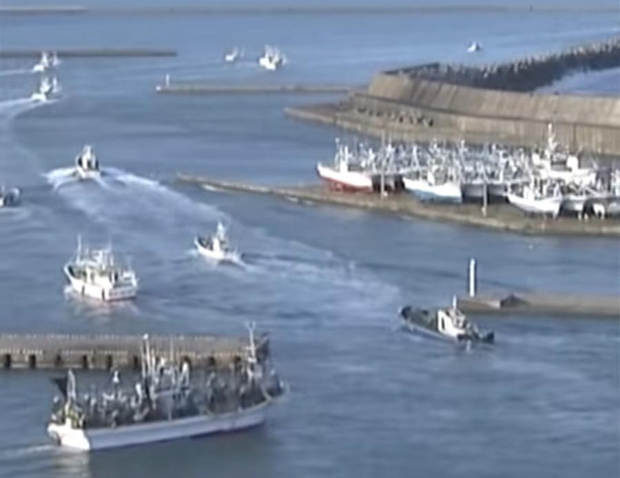تُظهر اللقطات سفناً تغادر ميناء "هوكايدو" بعد إصدار تحذير من تسونامي، عقب زلزال بقوة 7.5 درجات قبالة الساحل الشمالي الشرقي لليابان.