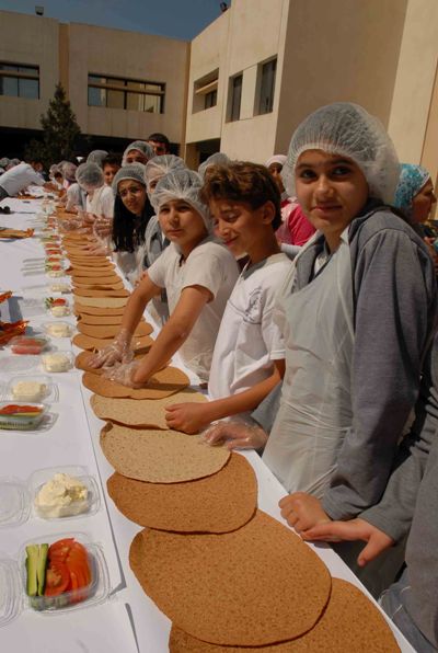 وبعد لوحة فلكلورية قدمها تلامذة مدارس الشبكة افتتحت الحريري والسعودي المعرض الفني البيئي المدرسي المشترك الذي تضمن ابداعات الطلاب من لوحات فنية ومجسمات تراثية واشغال يدوية ورسم وتلوين جداريات محور موضوعها الحفاظ على البيئة ، فيما انشغل عدد من الطلاب في تحضير اكبر سندويش مدرسي صحي عبارة عن عروسة لبنة بطول 60 متراً، ونصبت خيمة تراثية كبيرة ومجسم كبير لقلعة بعلبك التاريخية قدم الطلاب في ظلاله عروضهم الفلكورية والتراثية وعروض الزجل اللبناني ..