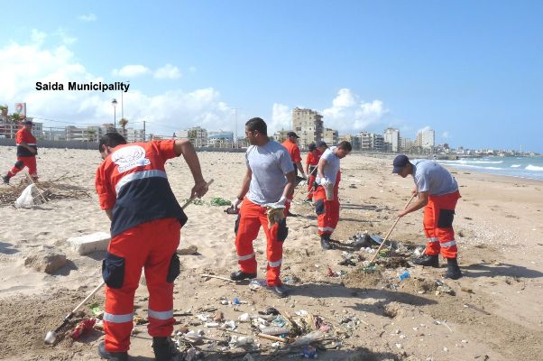 بلدية صيدا واكبت حملة الأزرق الكبير لتنظيف الشاطىء الصيداوي