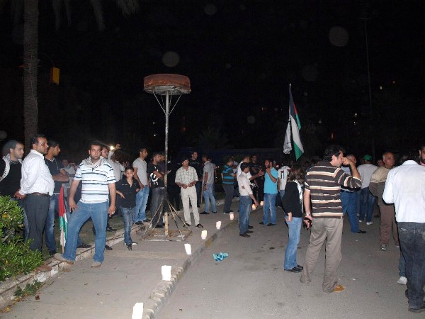 وكانت المنظمات الطلابية قد أقامت حاجزا بالقرب من تمثال الشهيد معروف سعد، لتوزيع قصاصات تحمل التحية لشهداء العودة إلى فلسطين.