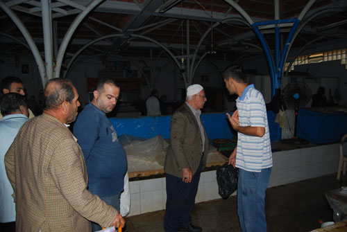نقيب الصيادين ديب كاعين دخل بمرافقيه على ميرة صيدا وصاح ..... كل الطاولات إلي في الميرة ... ه ه ه أي طاولة بعات سمك المشبوه أي طاولة ....؟ أي طاولة ...؟ مين باع سمك مش سمكنا إنتو بتعرفوا إنوا سمك مش من بحريتنا غير مرغوب فيه غير مرغوب فيييييييييييييييييه ... سمعتوا ,وبدأ يدور عليهم طاولة طاولة ويسأل ويردوا والله ما في شي وآخر قال ما إستقبلنايون وآخر نادا مش عارفينون وبس عرفنا إمنايون ، هكذا بدأت المسائلة حتى طردوا حاملي الفرش المثلجة الذين قدموا من الصرفند .