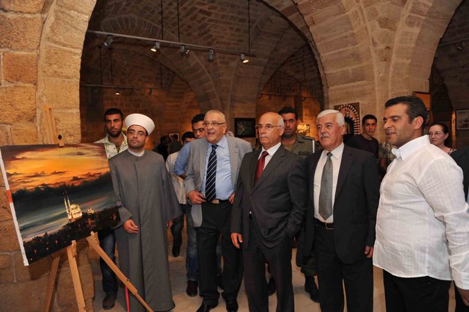 بعد قص شريط الافتتاح وجولة في المعرض ألقى الشريف كلمة قال فيها: لقد اصبح الخان محطة اسبوعية لأنشطة ثقافية وفنية وتراثية ، وبالتالي اصبح حدثاً اسبوعياً ومهرجاناً اسبوعيأ ..وتشرفت اليوم بتمثيل السيدة بهية الحريري في هذا المعرض الذي يصور فيه الفنان نبيل سعد لوحات من الطبيعة ومن مناطق جبلية ومن مدن معينة.. لا شك ان المعرض مهم .. ونحن نعتز ونفتخر بكل الاشخاص الذين يساهموا بهذه النشاطات ومؤسسة الحريري طبعا والست بهية متابعة لهذا الموضوع ومهتمة به، ولذلك نرى الحيوية الدائمة والنشاطات الدائمة التي لا تنقطع خلال الشهر ..