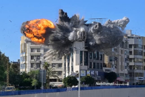 صور غارة و الدمار على مجمع الزهراء في مدينة صيدا و استهدف الشيخ صادق النابلسي