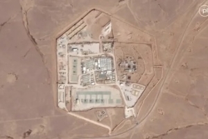صورة بالقمر الاصطناعي لقاعدة "البرج 22" التي استهدفتها طائرة مسيرة شمال شرقي الأردن (رويترز