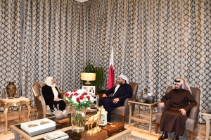 الوزير القطري د. الخليفي يستقبل بهية الحريري ونجلها نادر الحريري