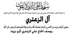 ال الزعتري وعائلة المرحوم يوسف الحاج علي الزعتري يشكرون المعزين