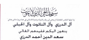 وفاة سعد الدين احمد الدرزي