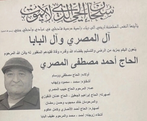 وفاة الحاج احمد مصطفى المصري