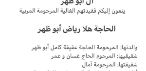 وفاة الحاجة هلا رياض ابو ظهر