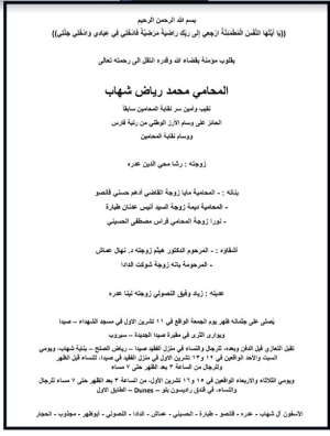 الخبير هيثم الظريف وعائلته يشكرون كل من واساهم بفقدهم المرحوم عبد الله الظريف