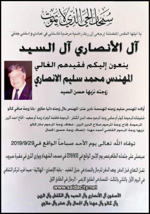 نعي المرحوم المهندس محمد سليم الأنصاري