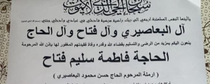 وفاة الحاجة فاطمه سليم فتاح