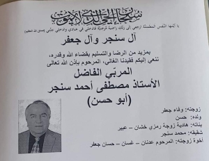 شكر من عائلة المرحوم الحاج مصطفى أحمد الحريري ( أبو نادر )