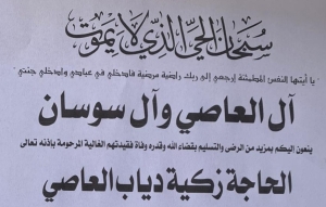 تلاوة ايات من ذكر الحكيم على وفاة الحاجة زكية ديب العاصي ال سوسان