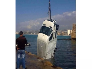 الأنواء تغرق سيارة وقاطرة في مرفاء صيدا