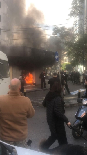 مجموعة "صرخة المودعين" تضرم النيران أمام منزل رئيس جمعية المصارف في حرش تابت - سن الفيل