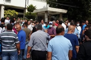 بالصور- عمال مياه صيدا ينفذون اعتصاماً امام مبنى المؤسسة ضد الفساد بالمصلحة