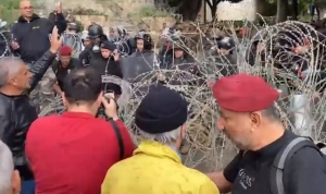 متقاعدو القطاع العام يقطعون الشريط الشائك عند مصرف لبنان
