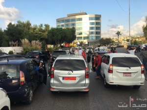 إعتصام لسائقي سيارات الاجرة في مدينة صيدا احتجاجا على اقفال محطات الوقود