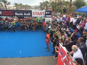 رئيس بلدية صيدا المهندس محمد السعودي يعطي اشارة انطلاق المشاركين في سباق 42.195 كلم