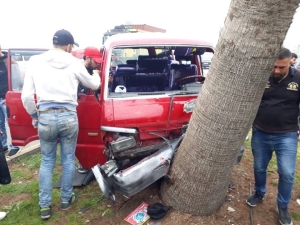 4 إصابات في حادث إصطدام فان لنقل الركاب بشجرة على الكورنيش البحري
